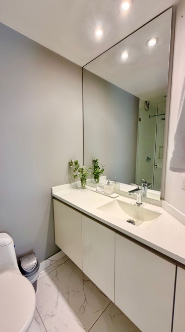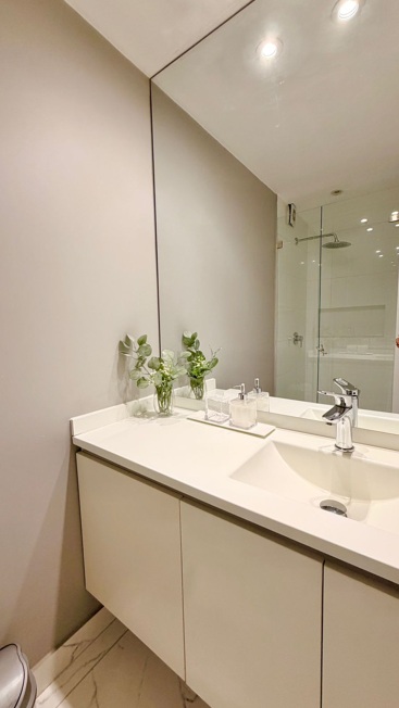 There are two well-appointed bedrooms and two full bathrooms, both designed with clean, modern finishes and excellent natural light. Each space is thoughtfully arranged to provide comfort, privacy, and a relaxed atmosphere.